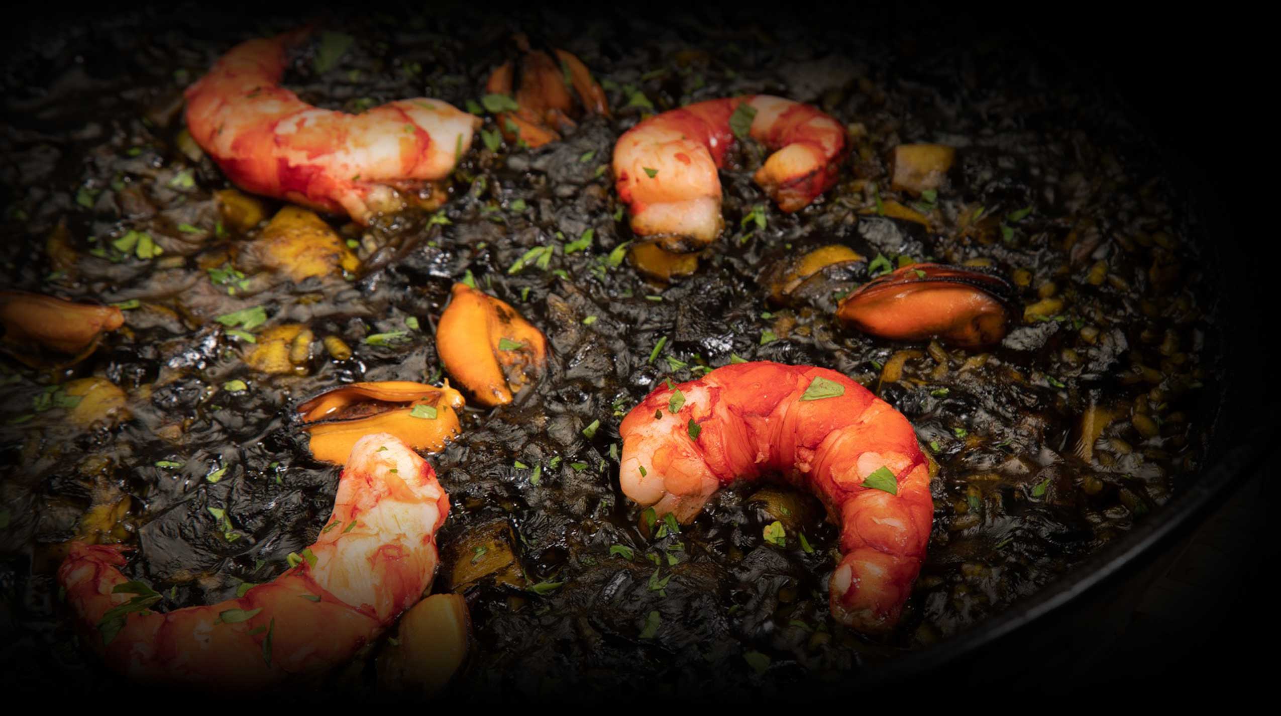 La paëlla au riz noir peut s'accompagner d'un aïoli.